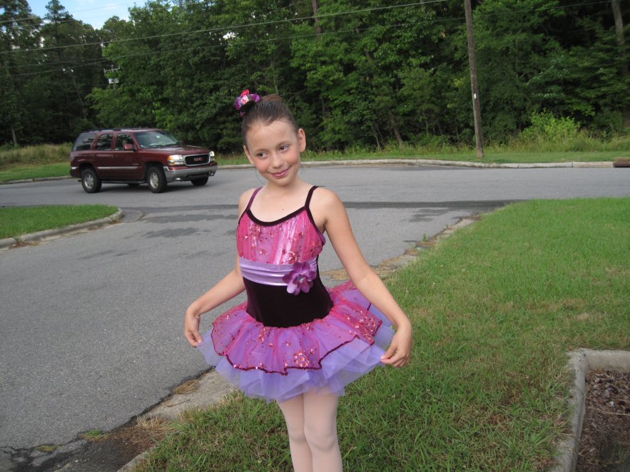 in her dance outfit